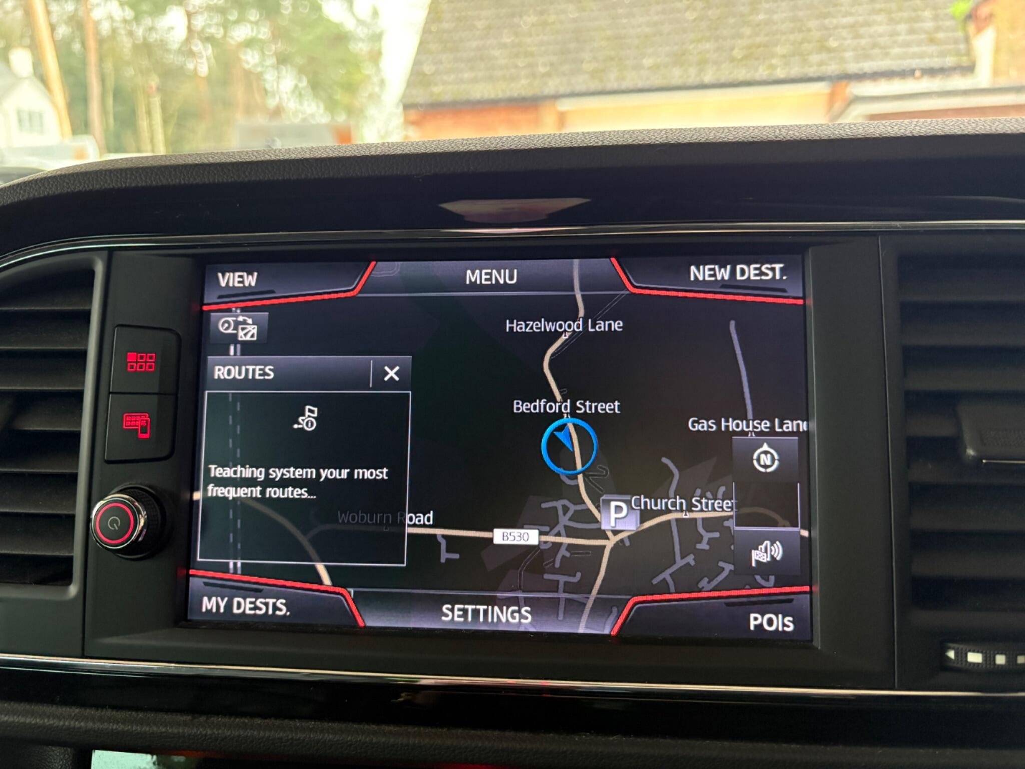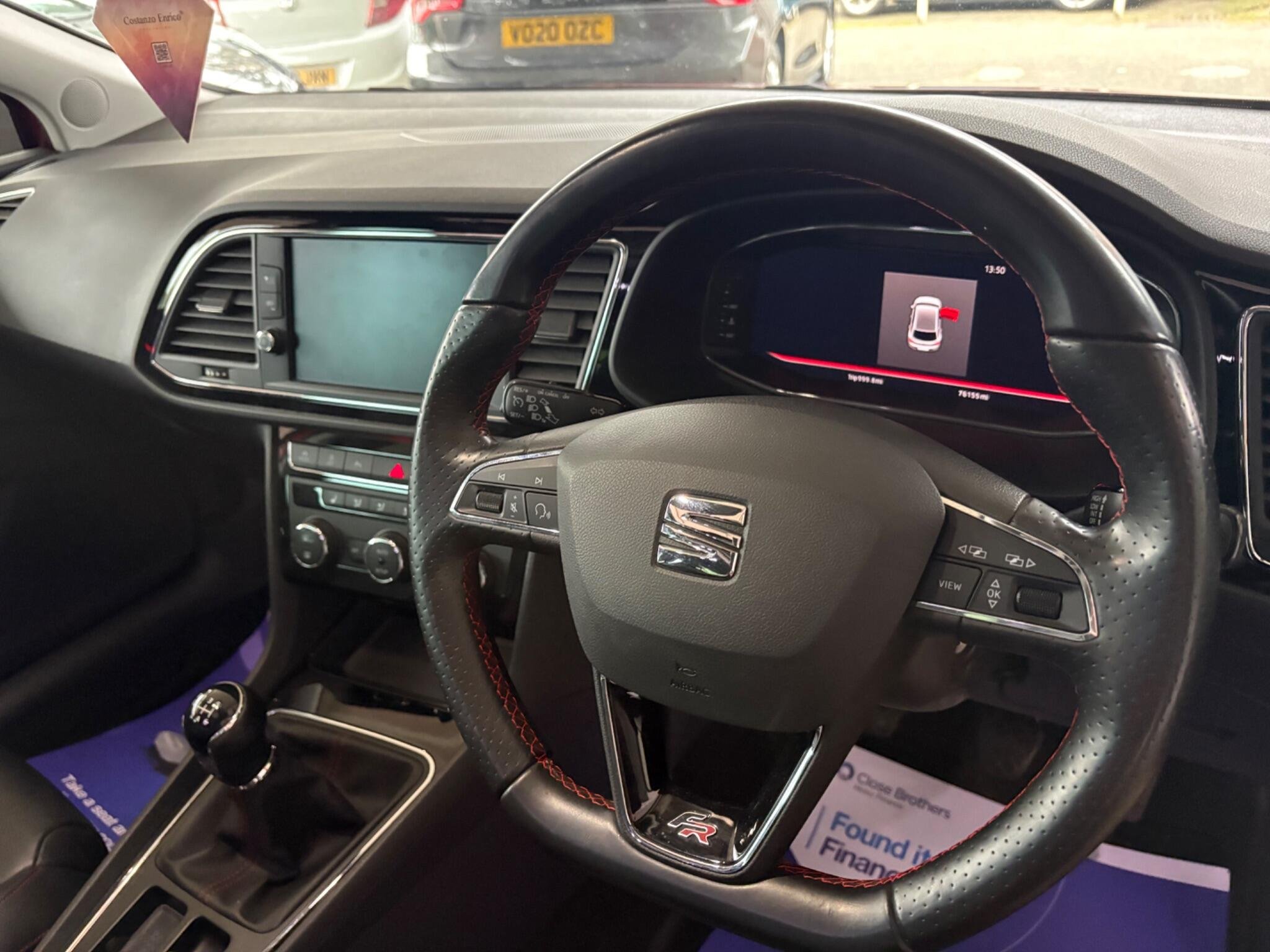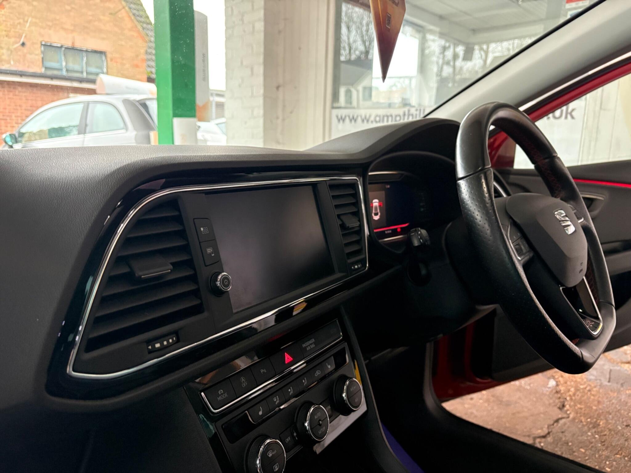 - Steering Wheel - Flat-Bottomed Perforated Leather with Red Stitching and FR Logo