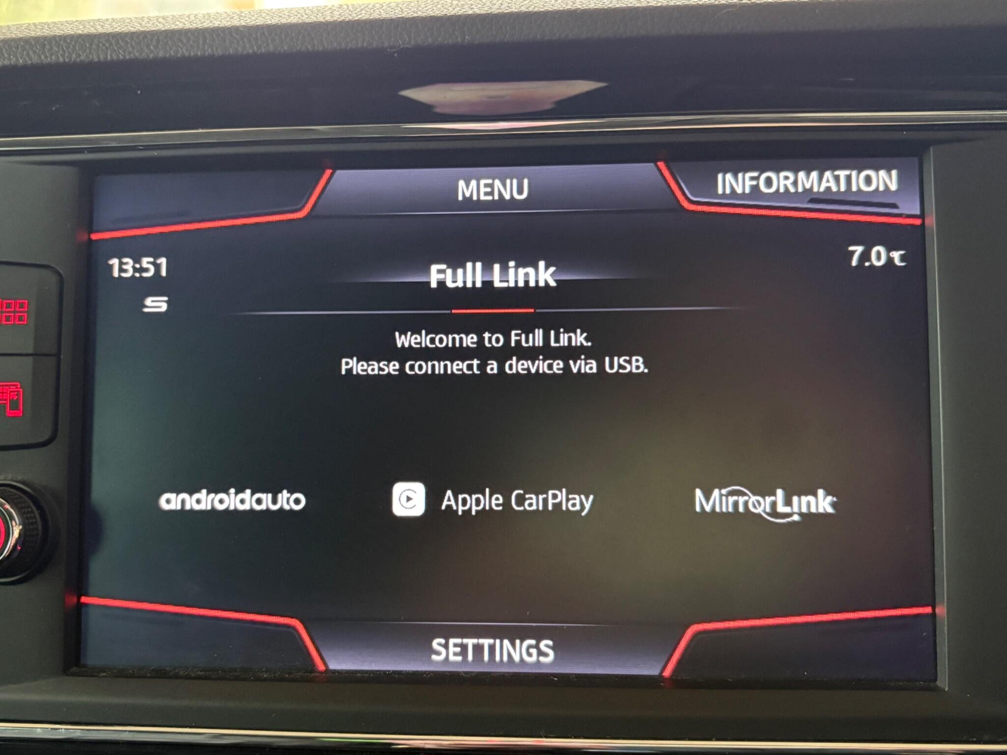 - SEAT Full Link Smartphone Integration - Mirror Link - Apple CarPlay - Google Android Auto